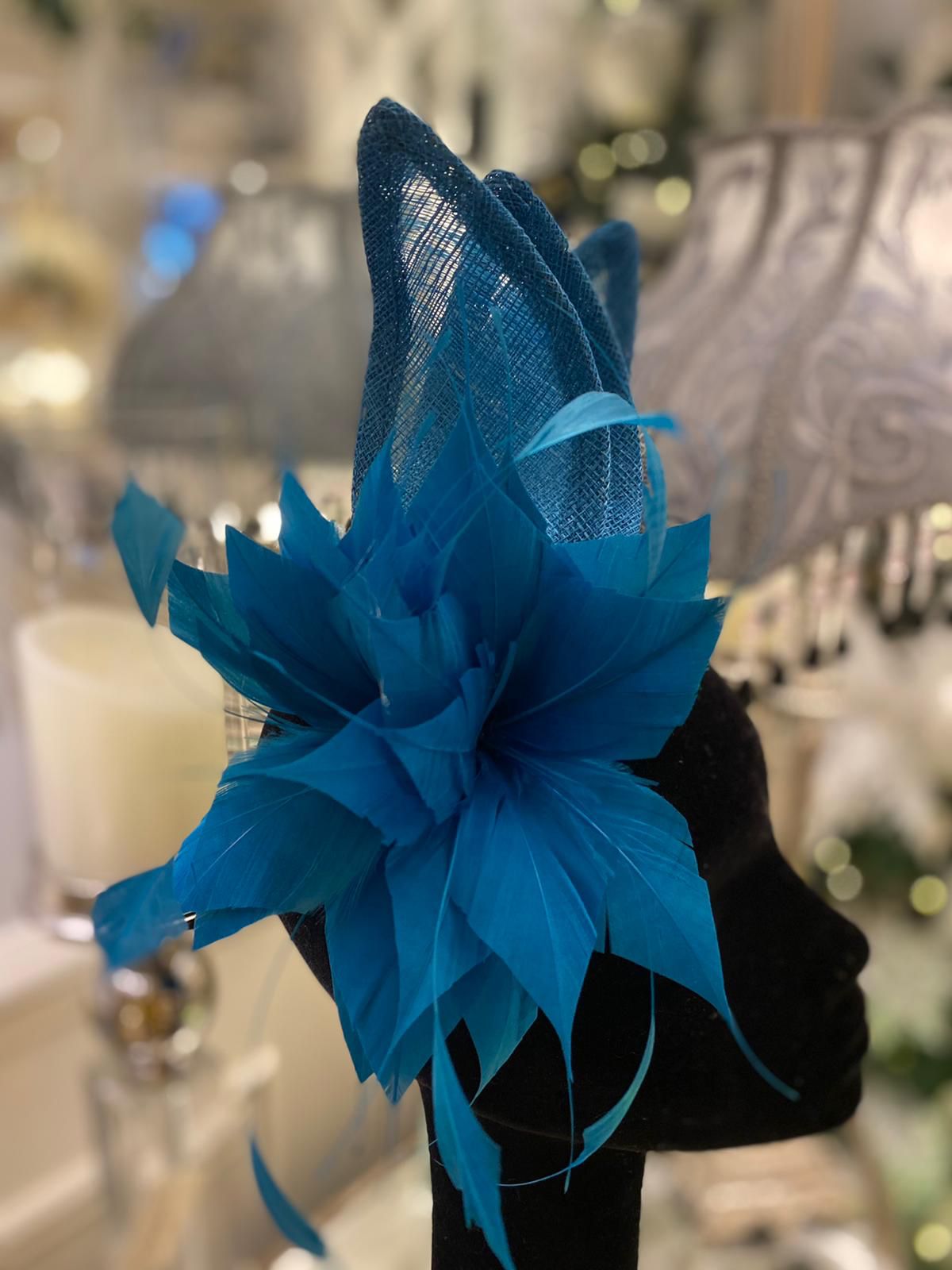 / Peacock Blue Fascinator With Flower Detail