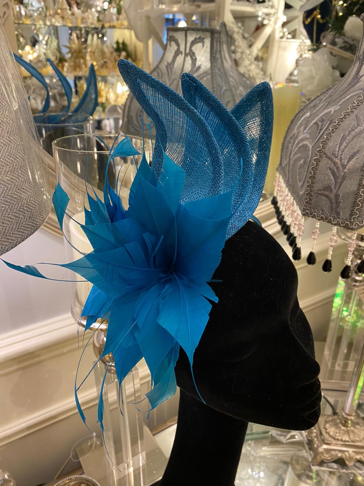 Peacock Blue Fascinator With Flower Detail
