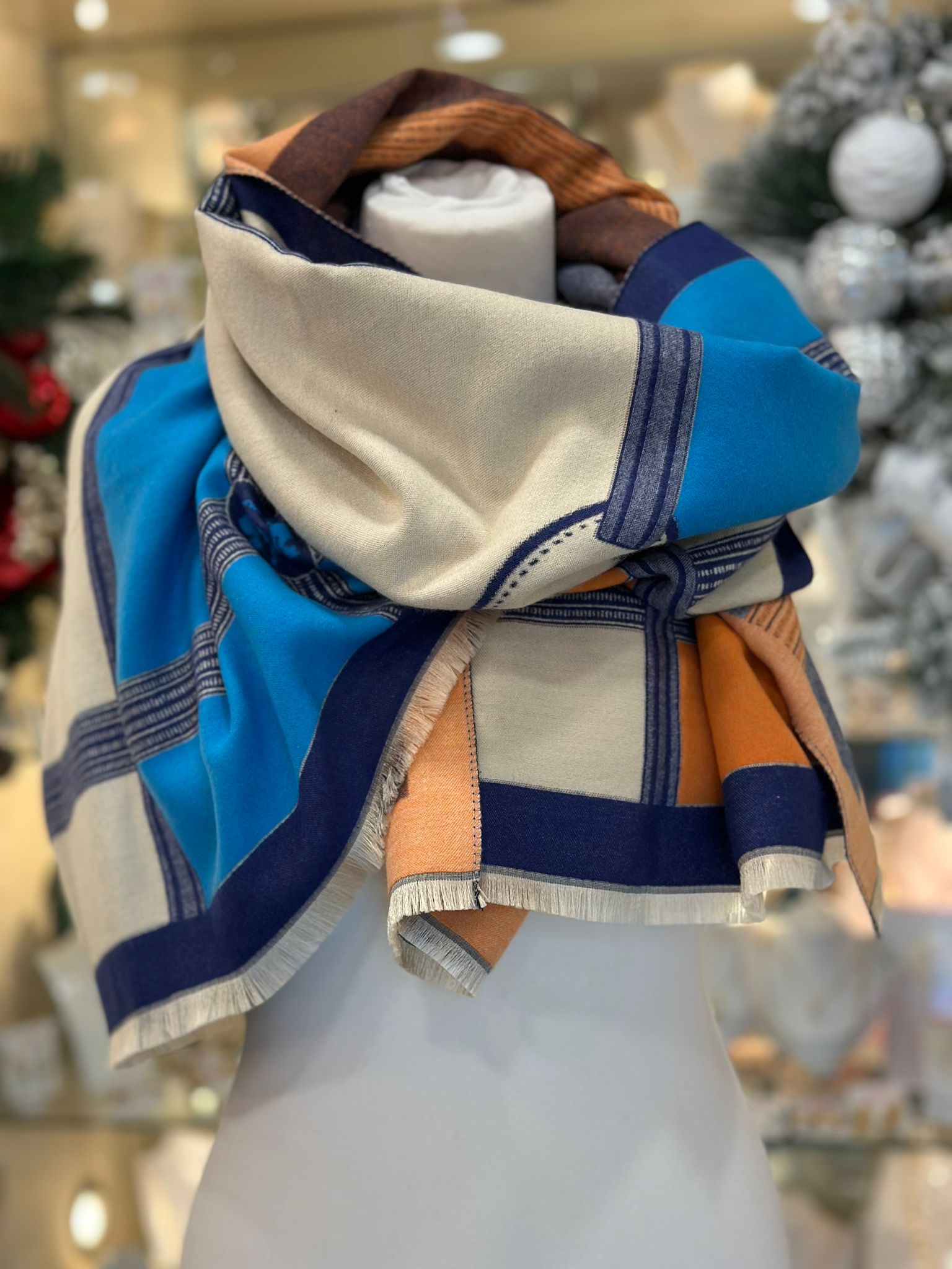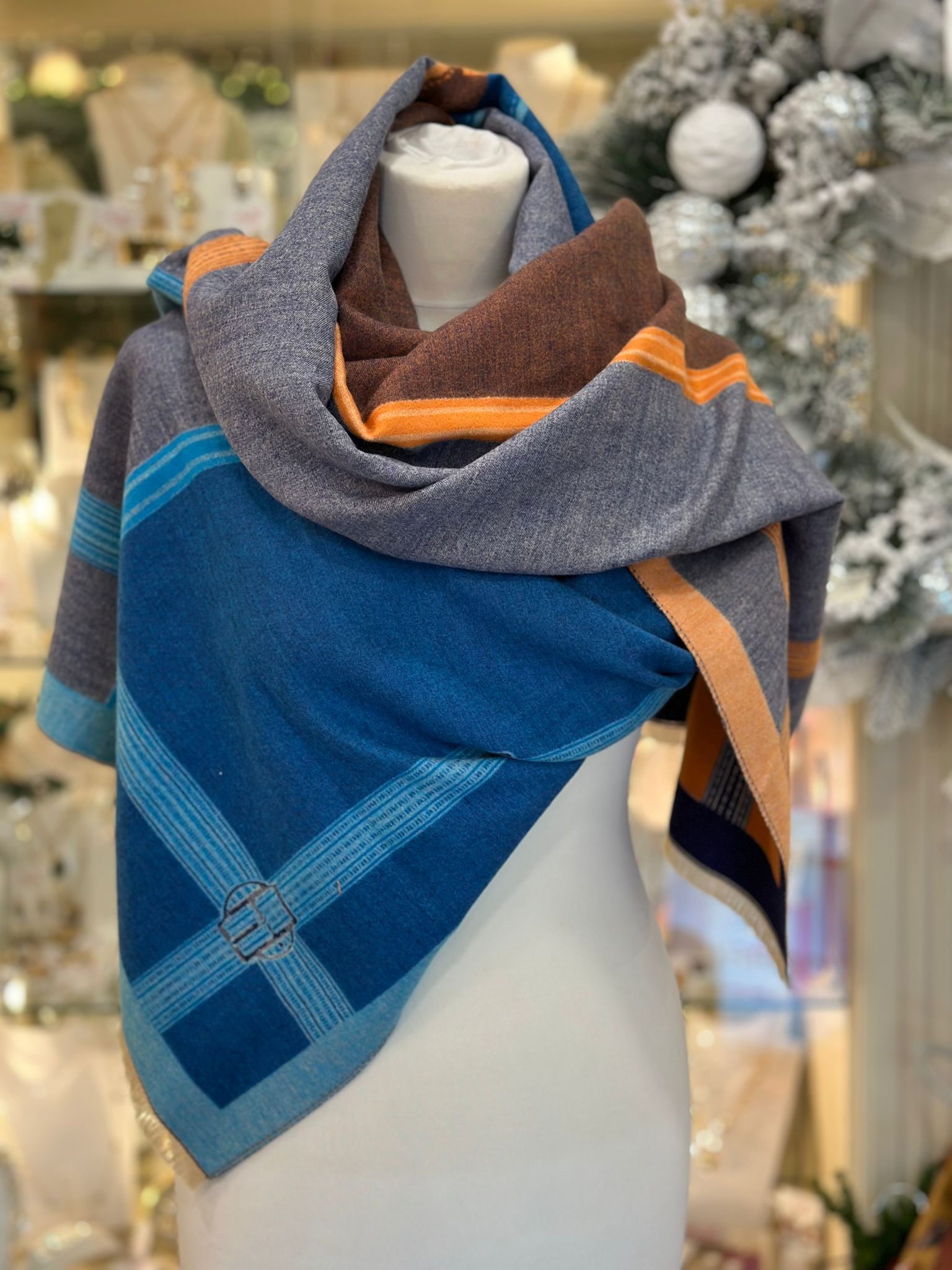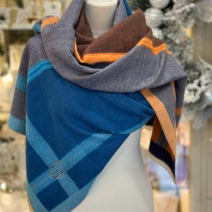 Cashmere Touch Double Sided Scarf Blue Cream Multi