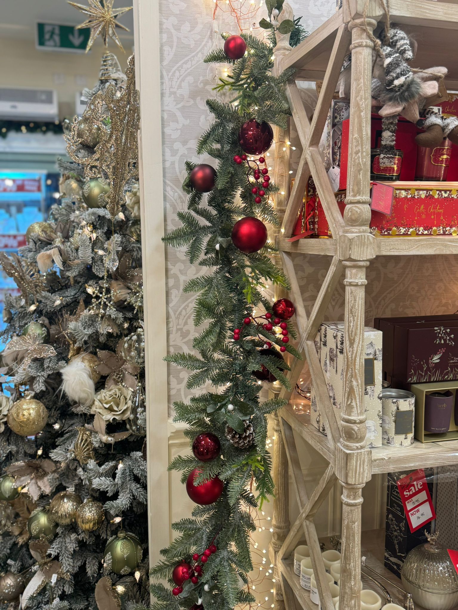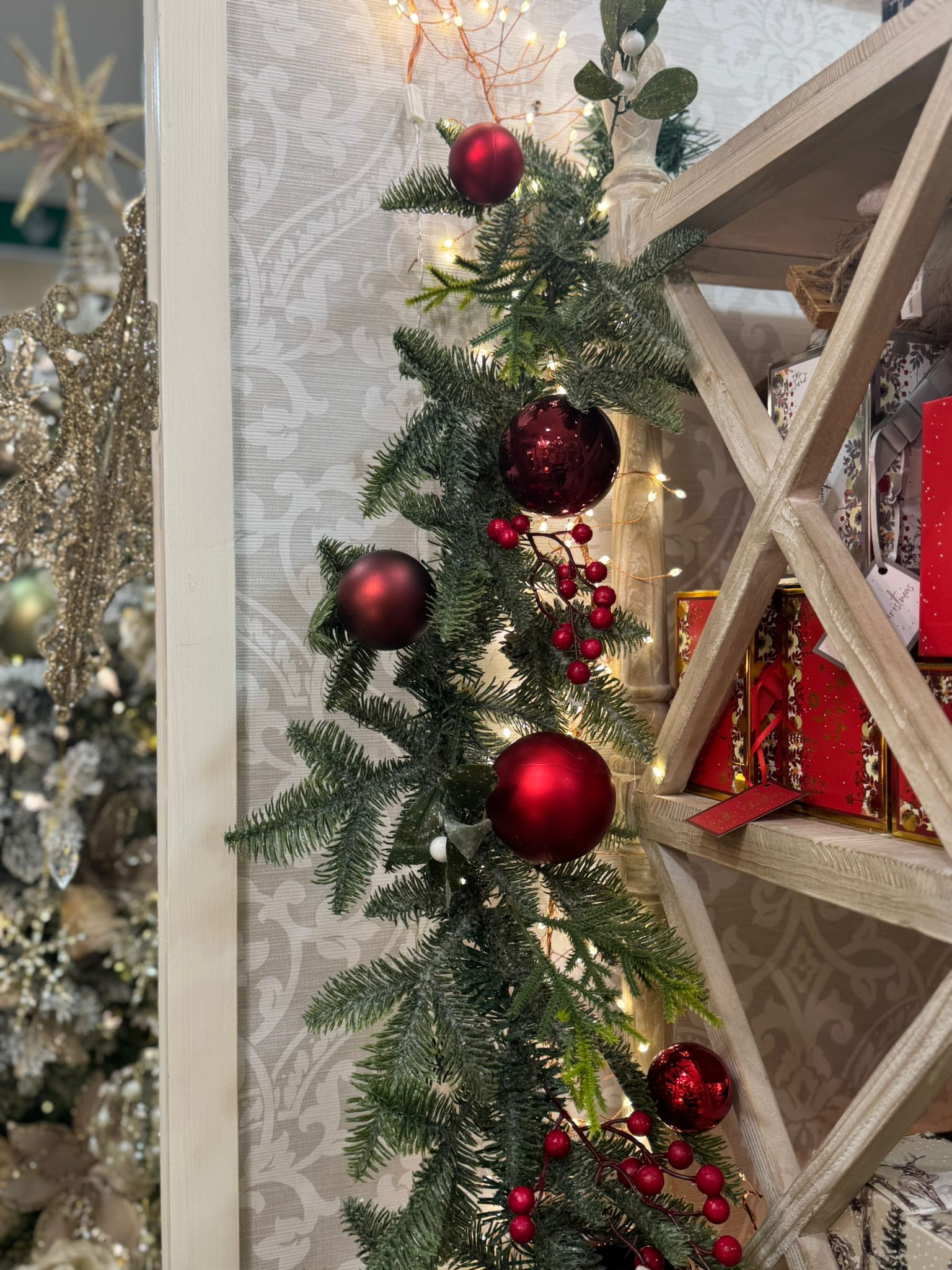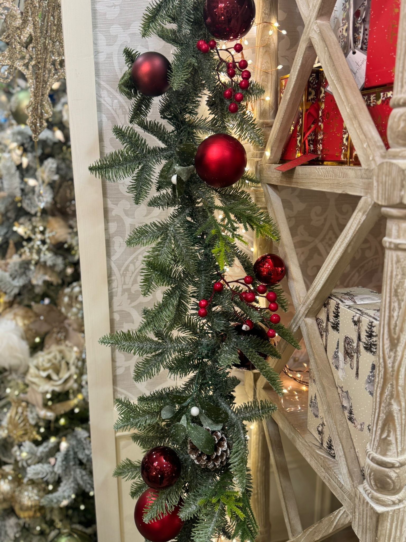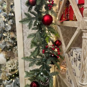 / Christmas Garland with Red Baubles & Berries 6ft