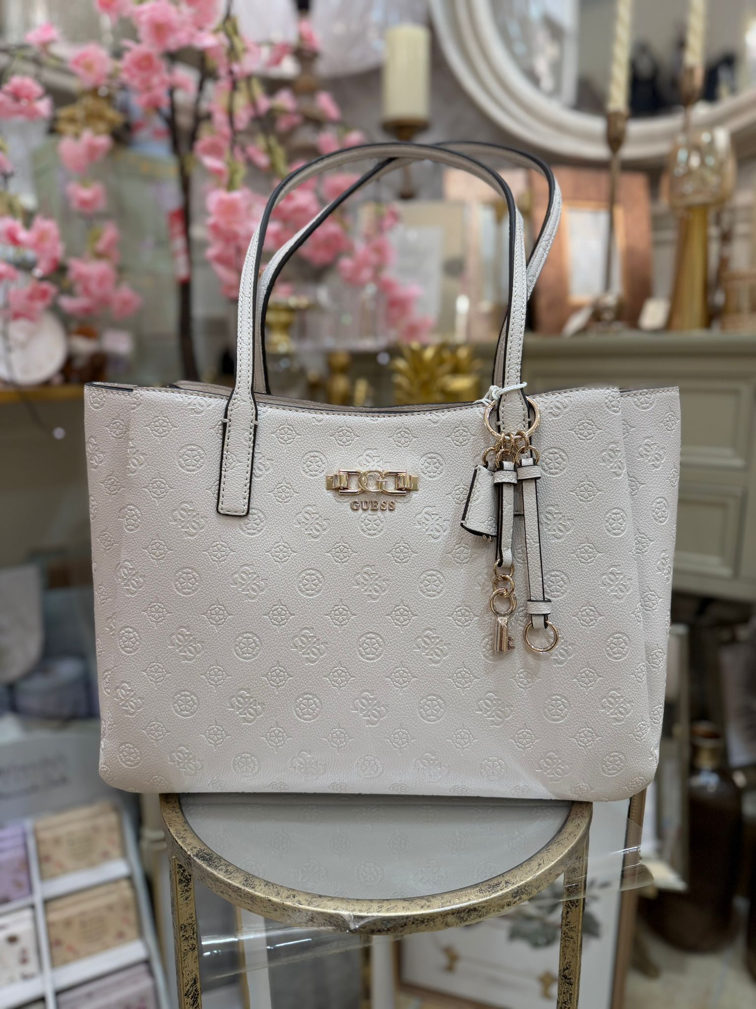 GUESS Anise Debossed-logo Patent Shopper Off White