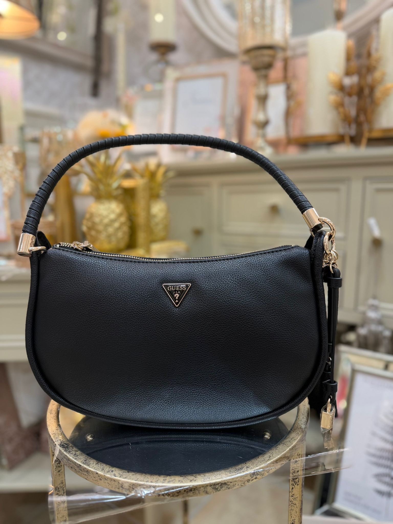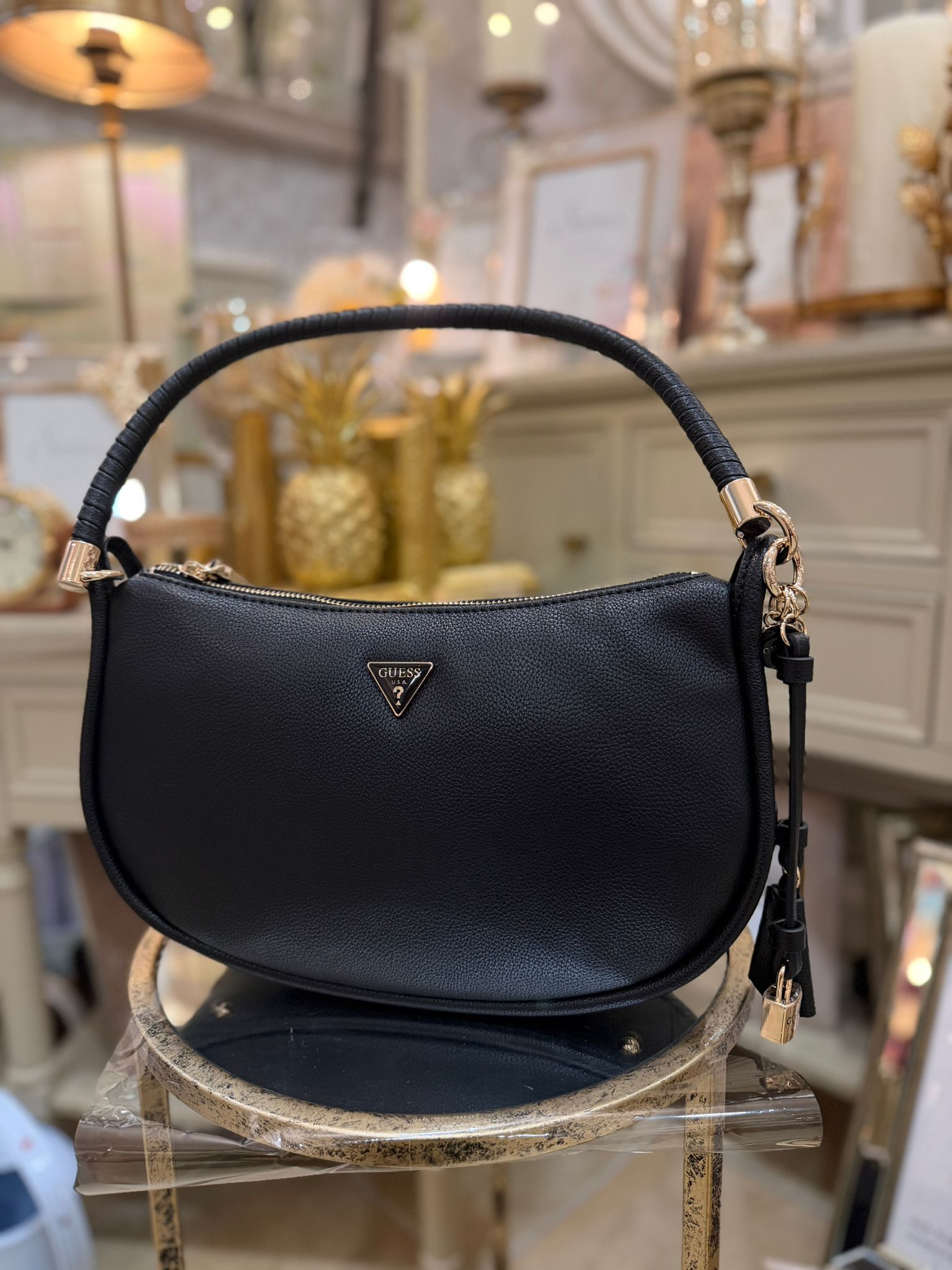 • Gold hardware.