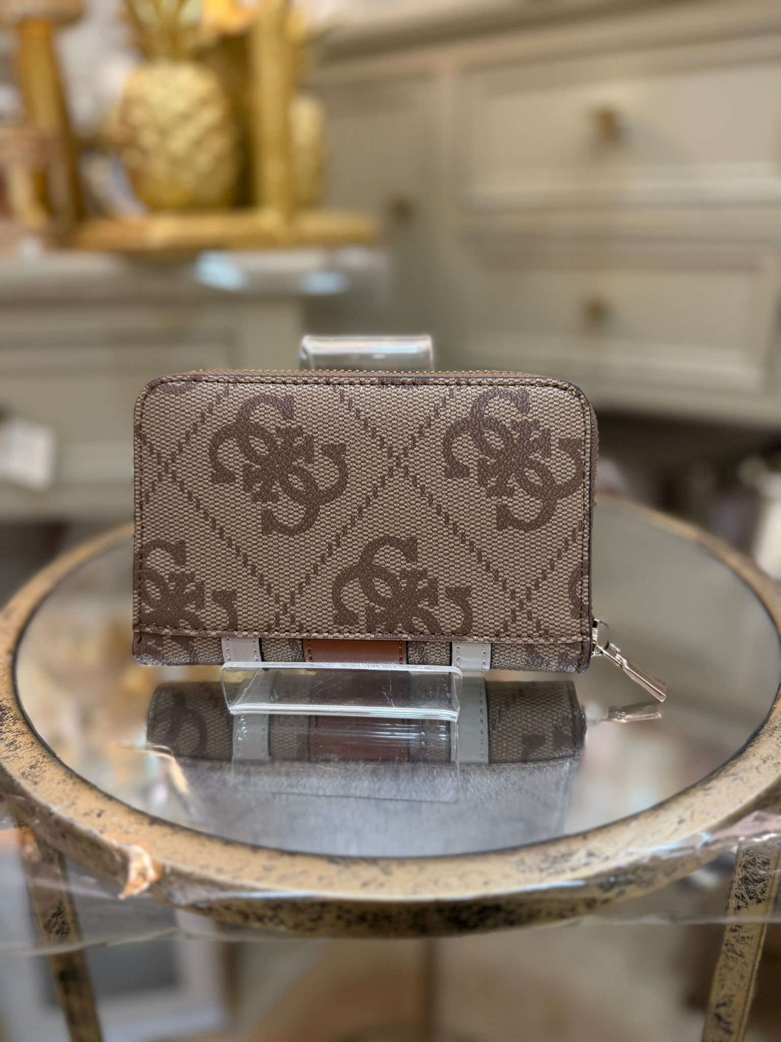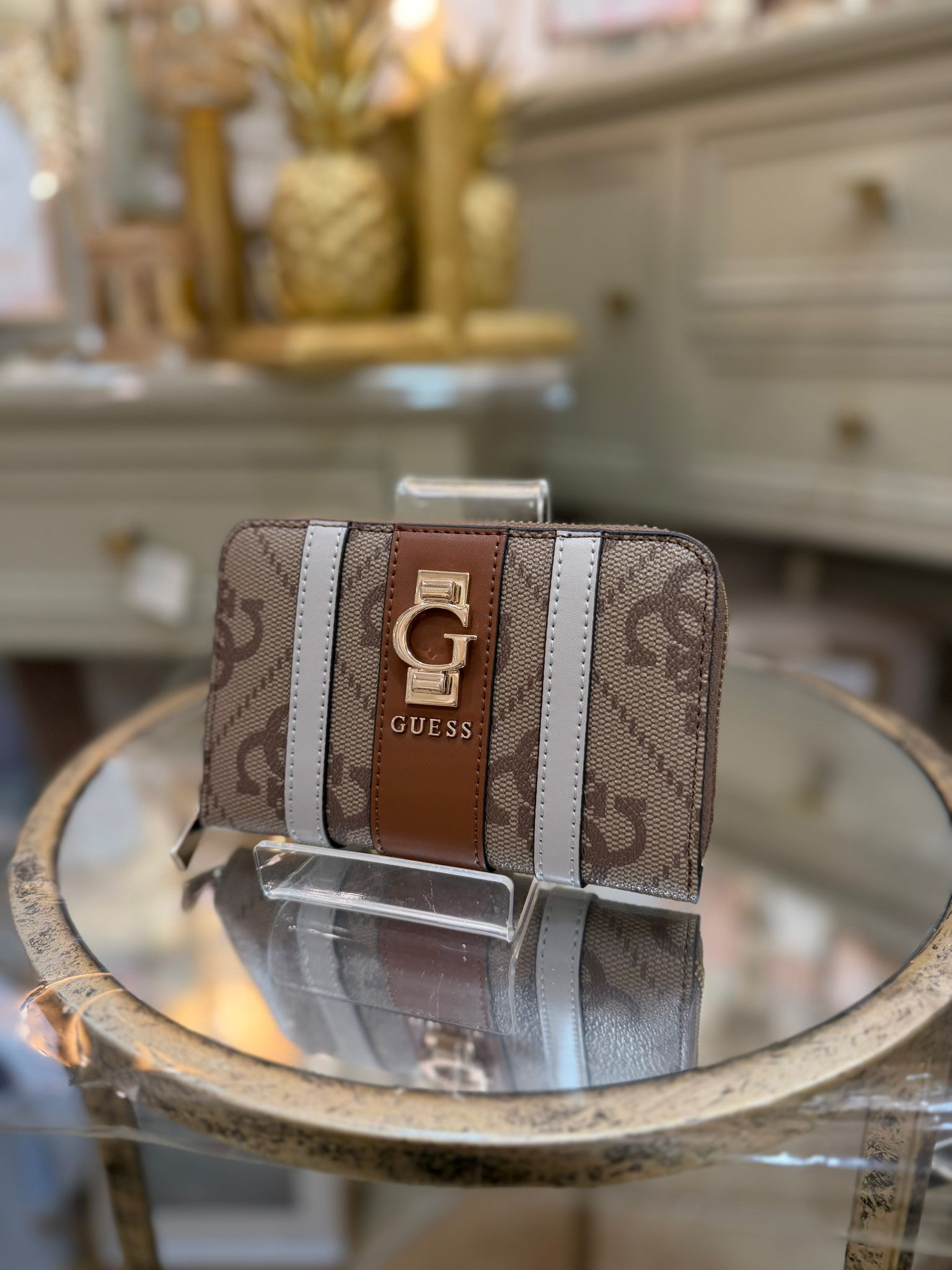 - Gold hardware.