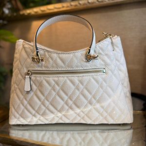 - Quilted faux leather outer.
