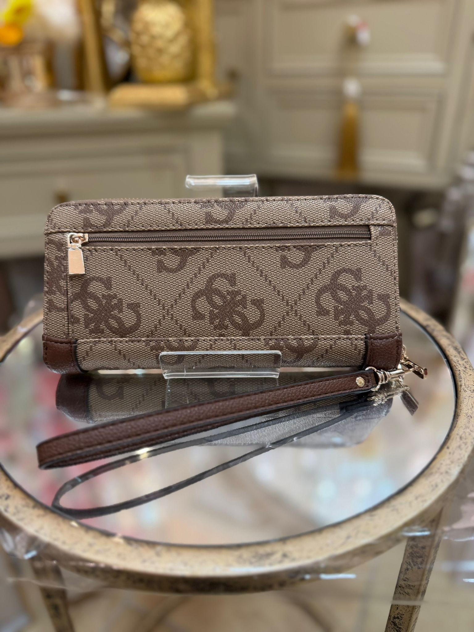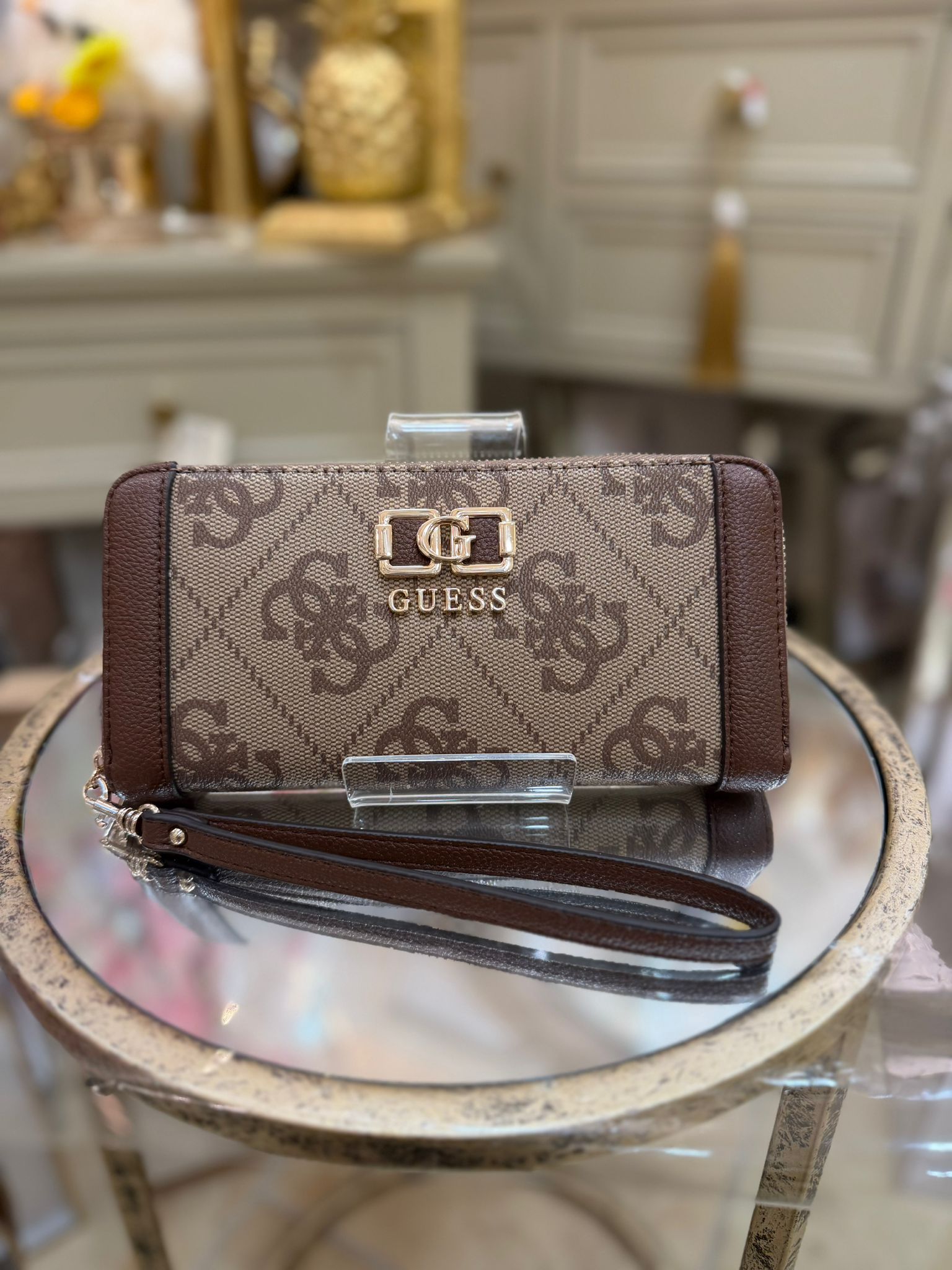 - Gold hardware.