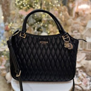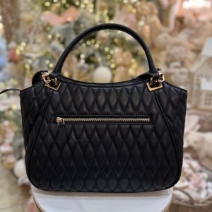 - Quilted faux leather outer.
