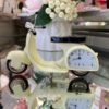 This dazzling vespa clock has a lasting style that would complement any bedside table or living room mantelpiece. The clock design showcases significant attention to detail. The clock face takes the place of the vespa’s back wheel cover with a clear Arabic dial and slimline contemporary clock hands. The clock is packaged in a craft brown box.