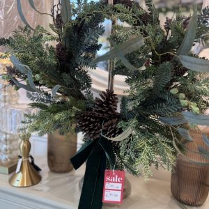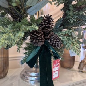 Green Velvet Bow Wreath with Pinecones & Foliage 45cm