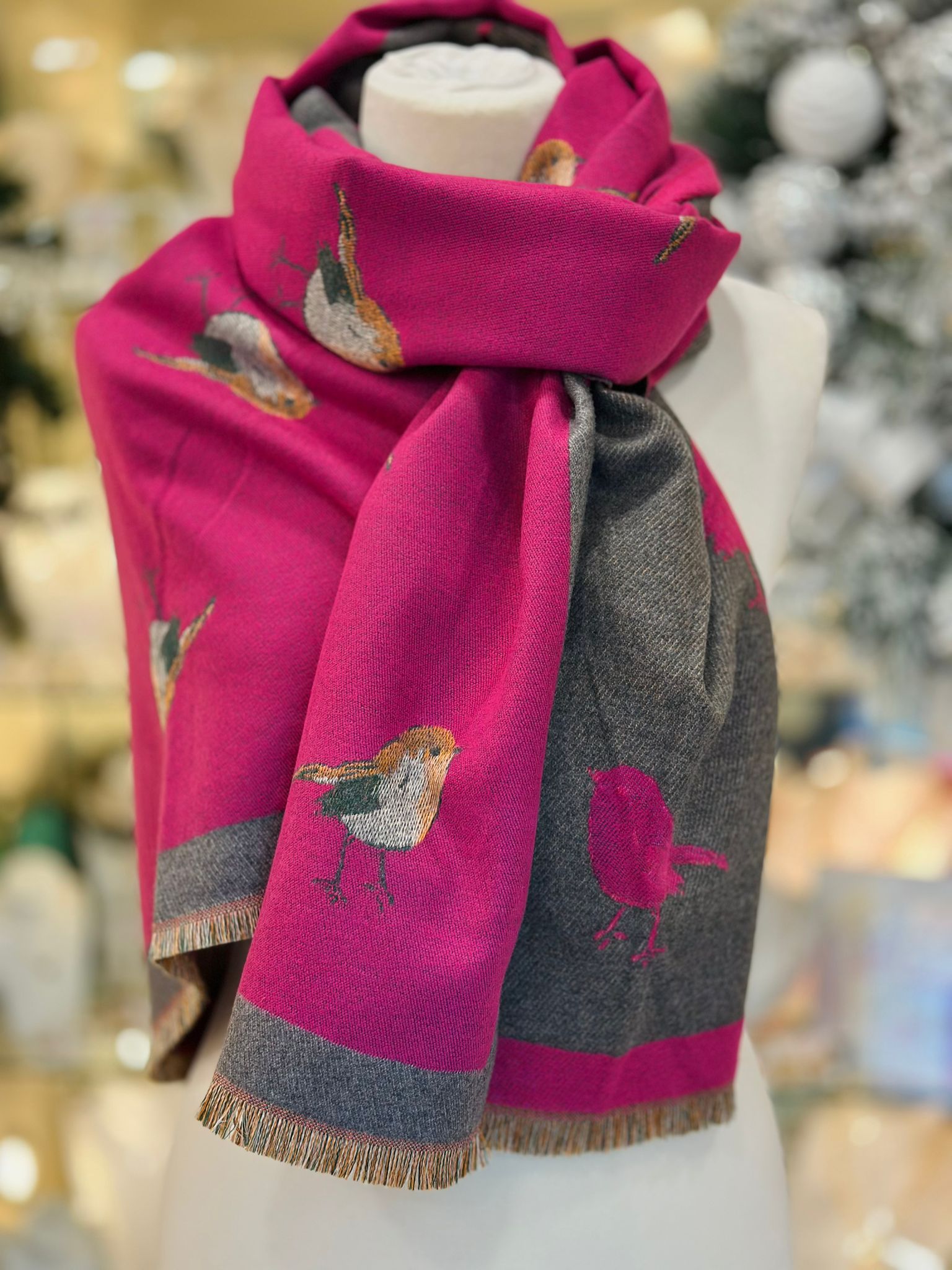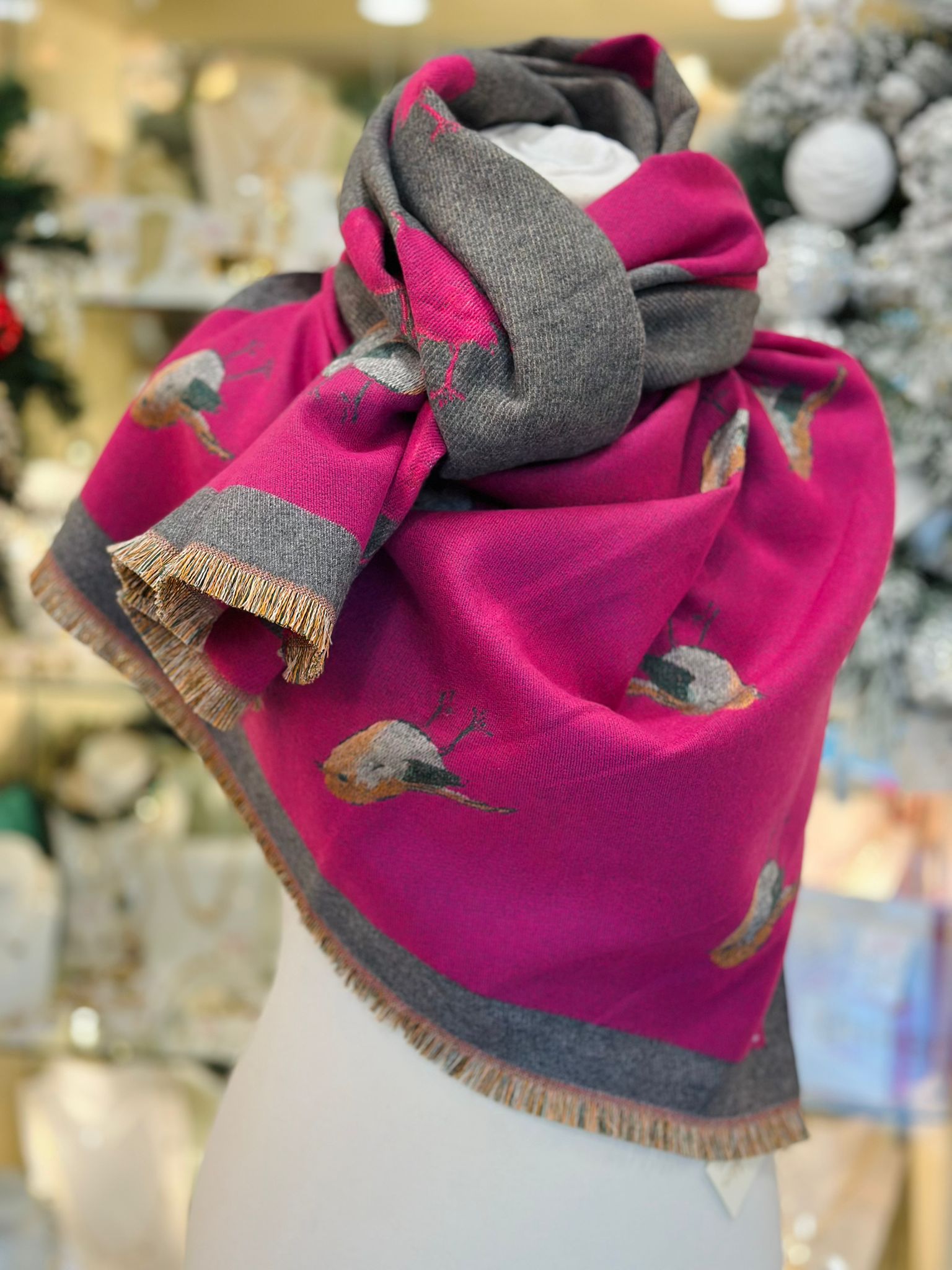 Robin Cashmere Touch Double Sided Scarf Pink Multi