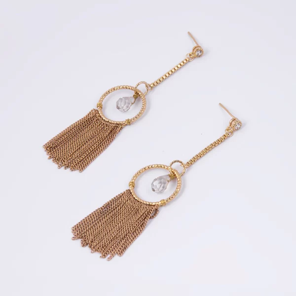 Beautiful gold & rose gold tassel earrings embellished with Czech crystal. Length 8cm. Stud fastening.