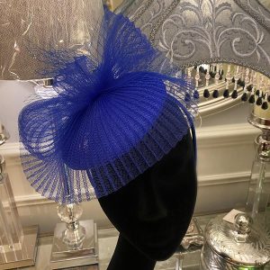 Sapphire Blue Fascinator with Pleated Sinamay Bow Detail