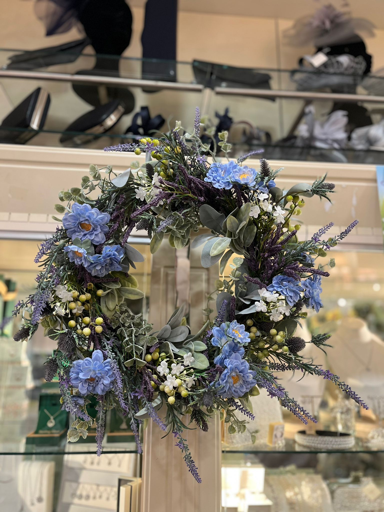 Spring Flower Wreath 48cm Blue & White