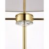A 2 light floor light finished in a bright brass plate with a vintage white silk shade and crystal glass detailing. suitable for use with LED lamps and supplied with an inline foot switch