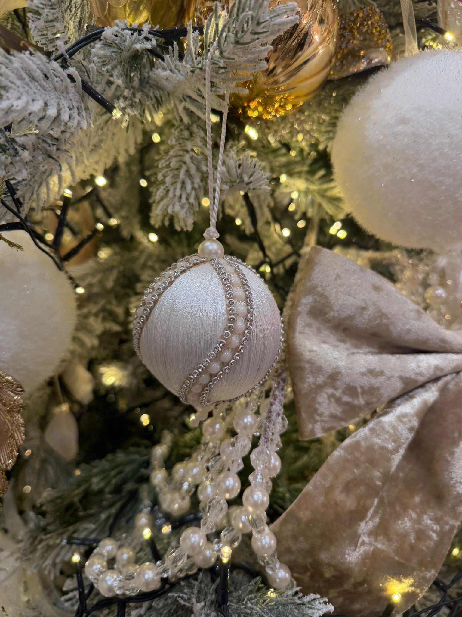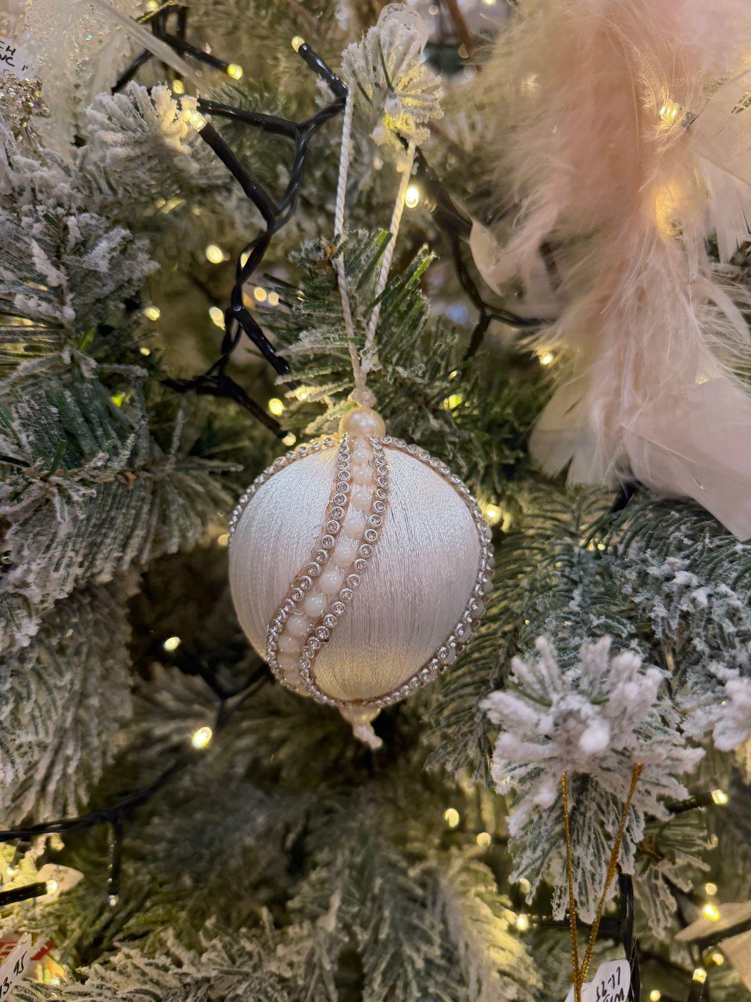 White Silk Thread with Pearl Detail Bauble 10cm (Copy)
