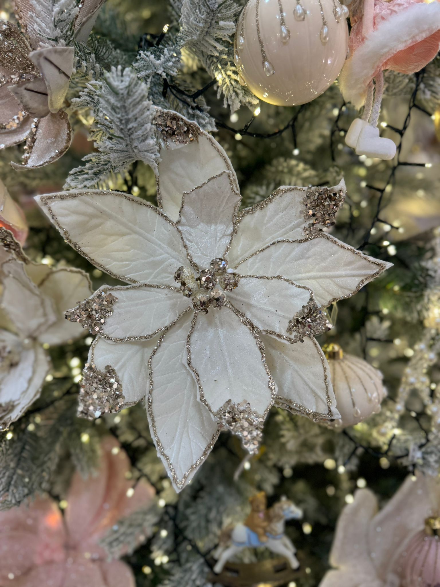 / White Silver Glitter Poinsettia