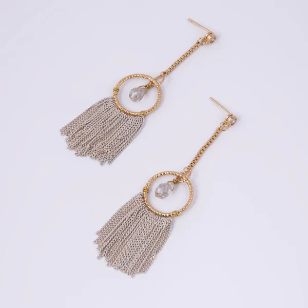 Beautiful gold & white tassel earrings embellished with Czech crystal. Length 8cm. Stud fastening.